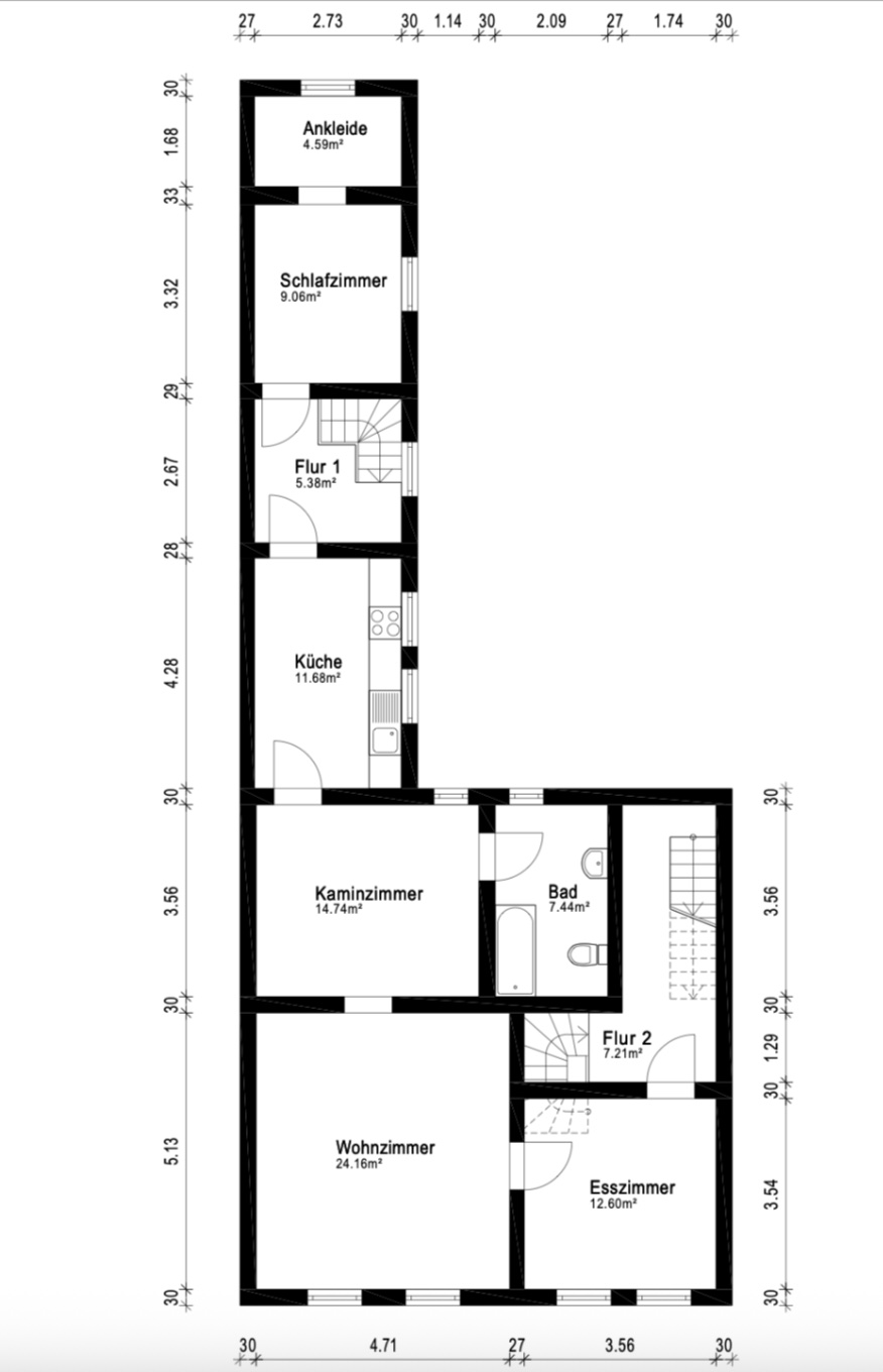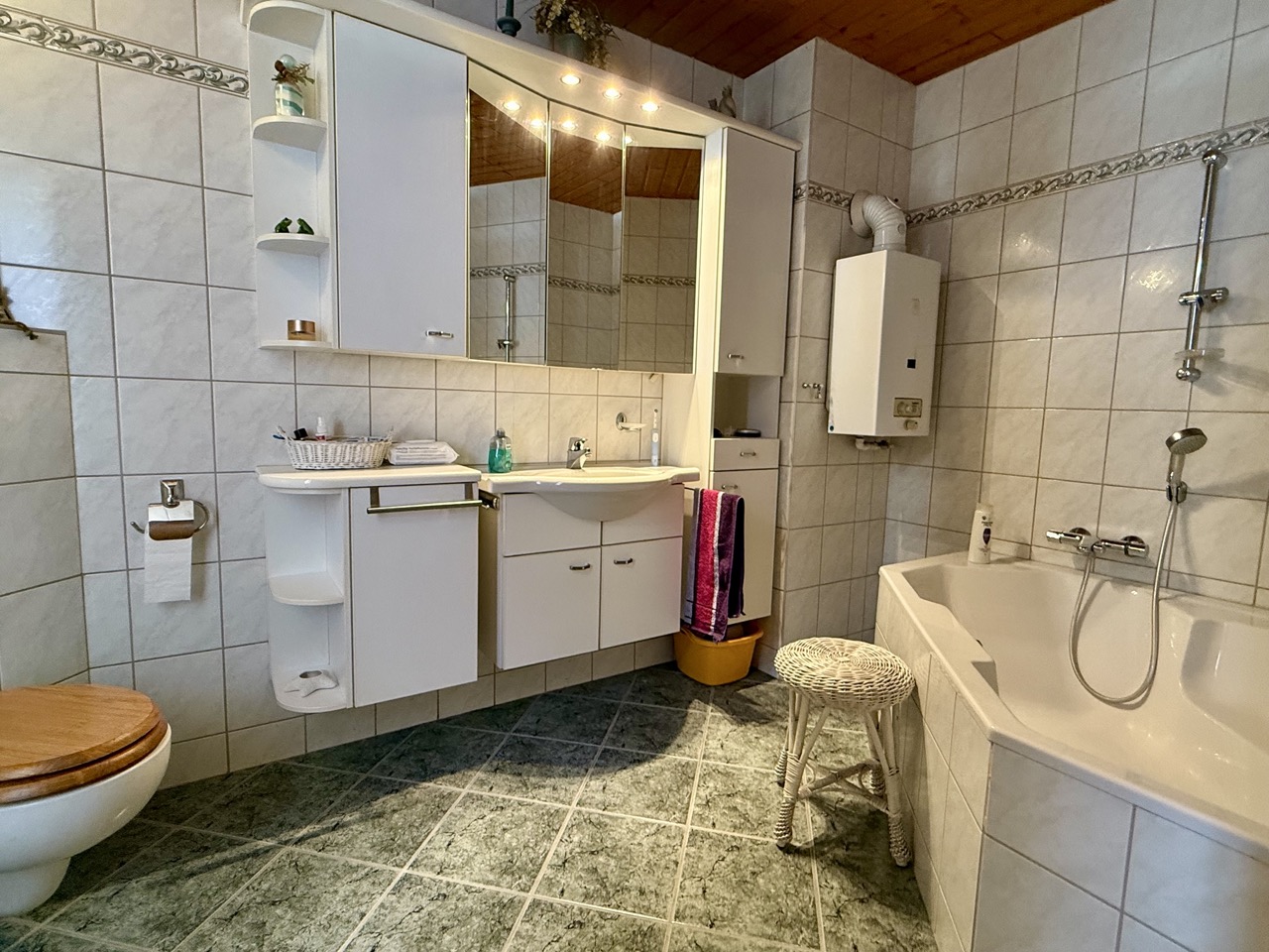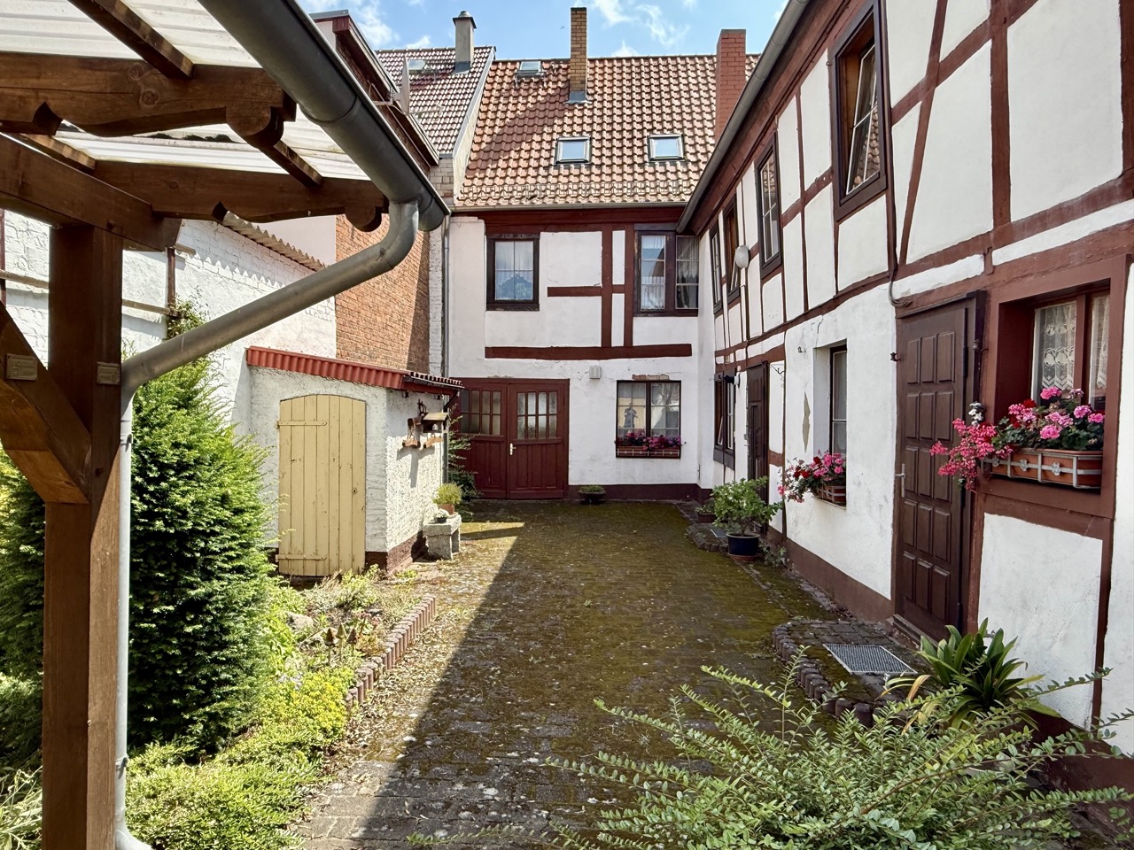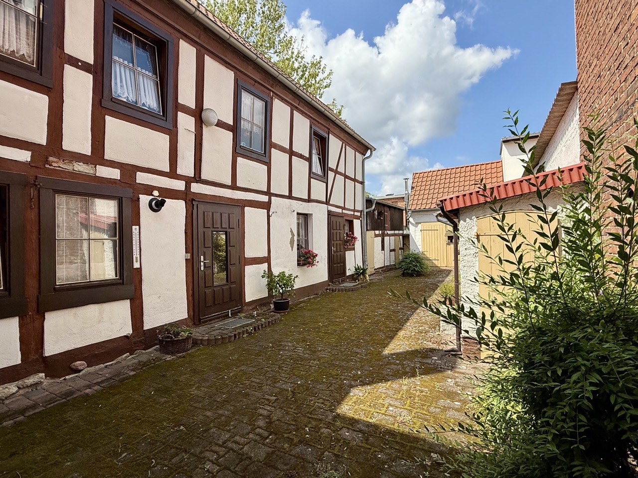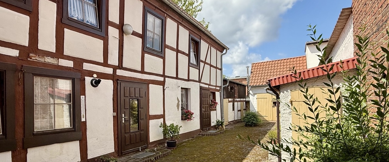 Das Wohnhaus verfügt über 4 Zimmer sowie 2 modernisierte Bäder, die sich auf zwei Etagen verteilen. Große Fenster und der klassische Fachwerkstil schaffen eine helle, einladende Atmosphäre.